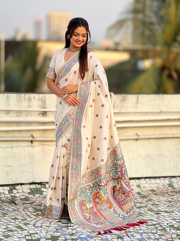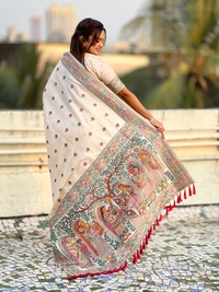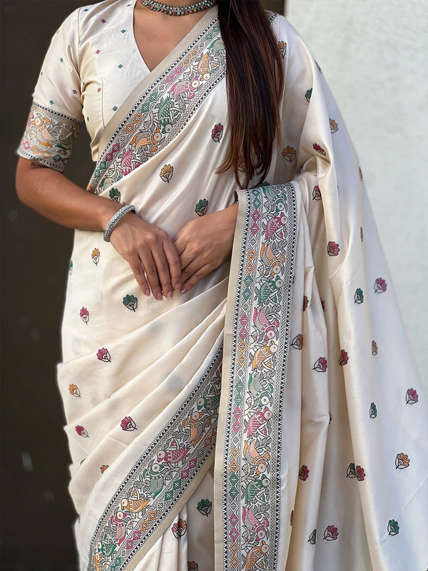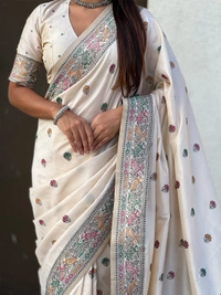 Authentic Baluchari Soft Silk Saree with Meenakari Flower Motifs & Rich Woven Pallu