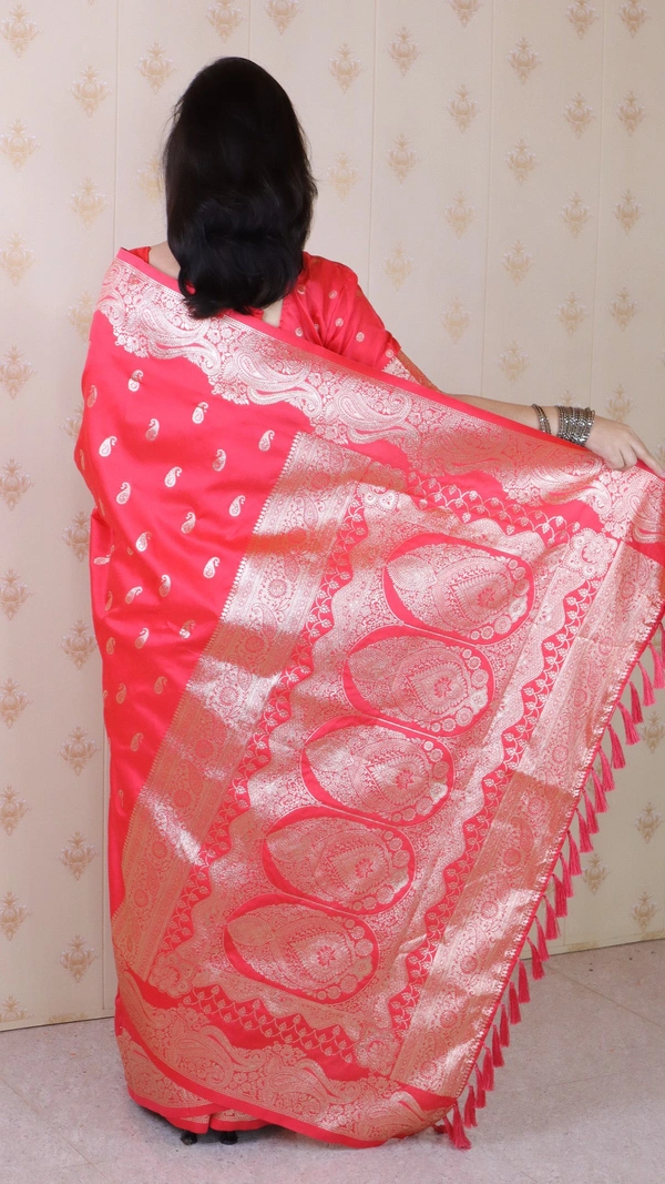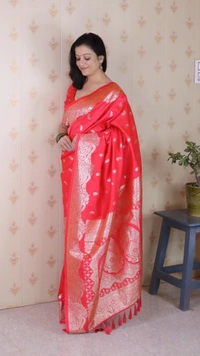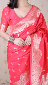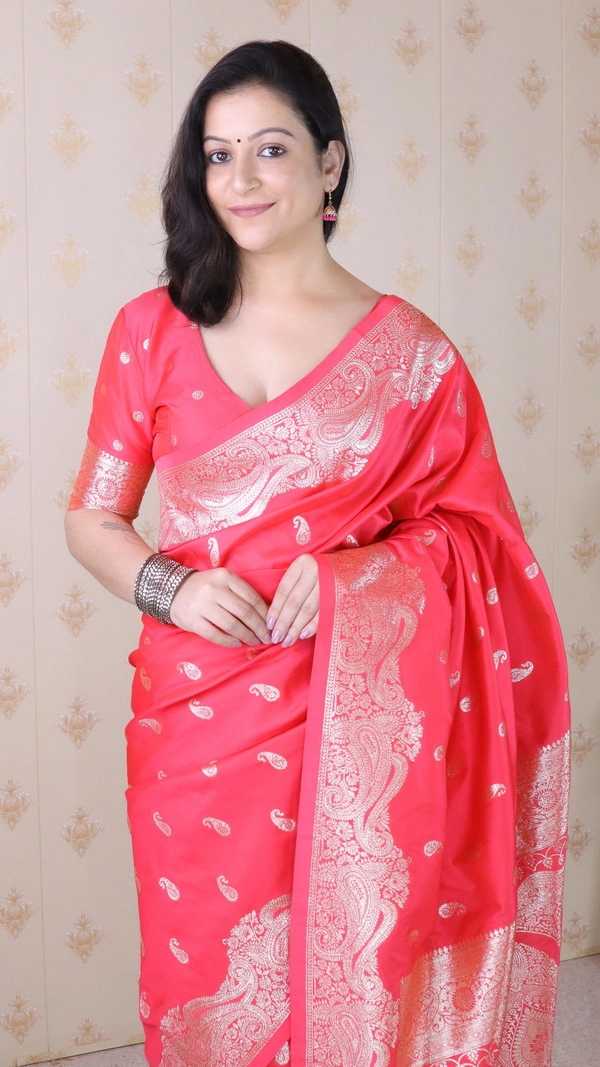 Banarasi Soft Silk Saree with Silver Zari Jaal Weaves