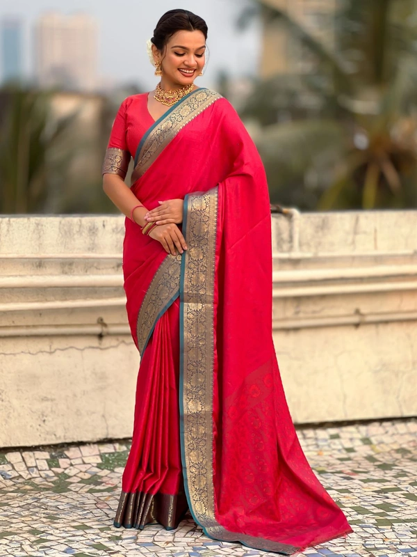 BANDHANI Soft Patola Silk Saree with Bandhani Weaves and Contrast Floral Zari Border
