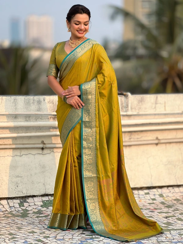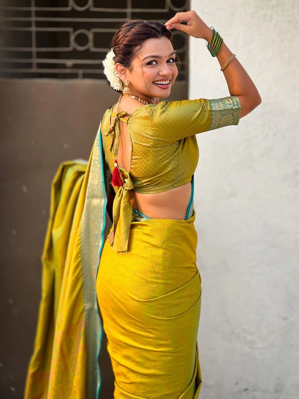 BANDHANI Soft Patola Silk Saree with Bandhani Weaves and Contrast Floral Zari Border