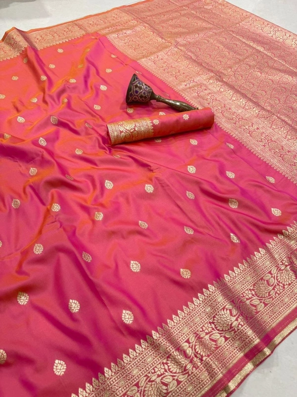 - Premium Fabric: Made from pure heavy Banarasi soft silk, this saree offers unmatched comfort and a luxurious drape.