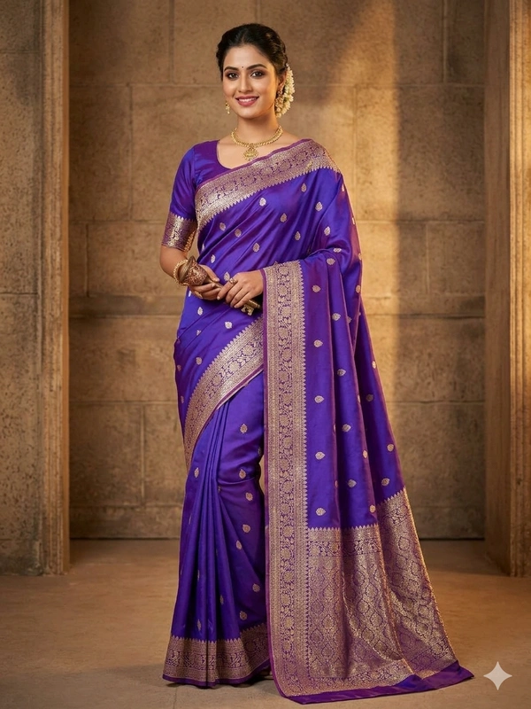 - Pure Banarasi Silk: Made from premium-quality, heavy Banarasi silk, this saree offers a soft and smooth texture that feels luxurious against your skin.