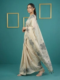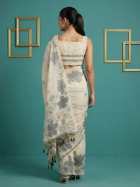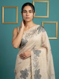 Designer Muga Cotton Saree featuring Classic Pencil Art Flower Pallu