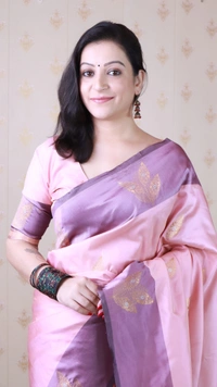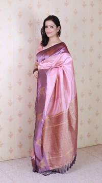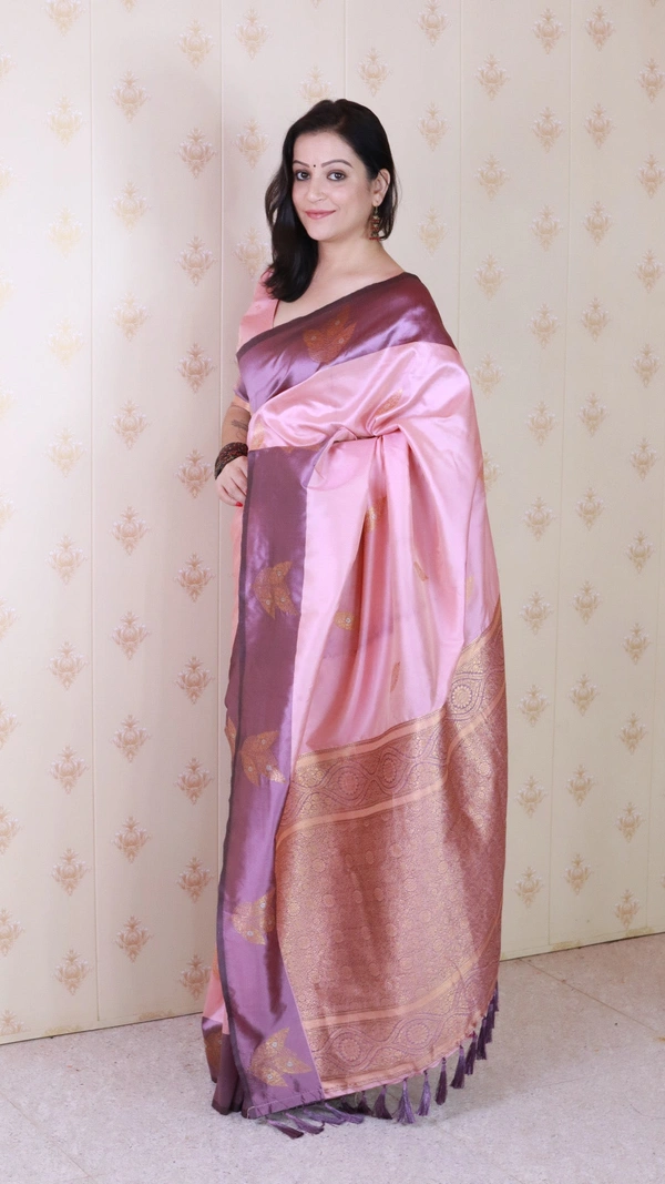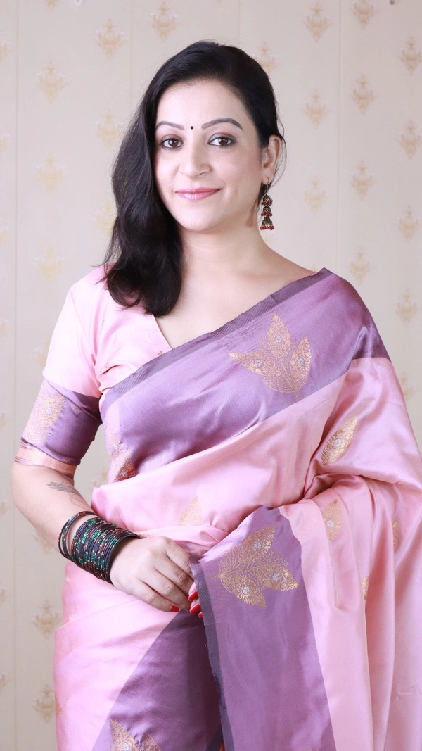 Dusty Soft Silk Saree with Zigzag Motifs & Floral Zari Border