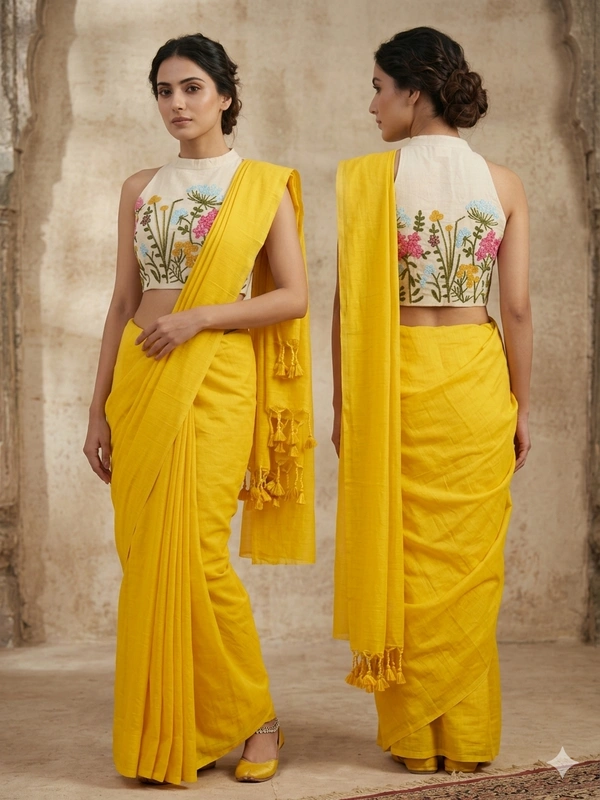 EF-210 Khadi Cotton Saree with Tassels & Work Blouse Piece - A Timeless Elegance