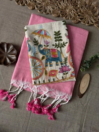 Crafted from premium-quality Khadi fabric, this saree is lightweight, breathable, and drapes beautifully for a graceful look. The intricate design and the unstitched work blouse allow you to personalize your style, ensuring a perfect fit and unparalleled sophistication.