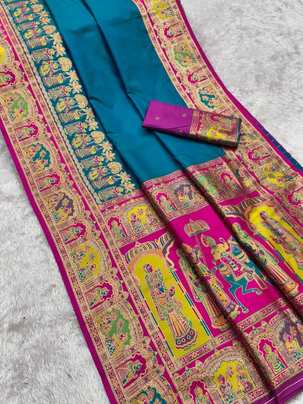 "KASHIDA PASHMINA" Pure Paithani Silk Saree | Rich Purple Body with Intricate Multicolor Paisley Border & Contrast Blouse