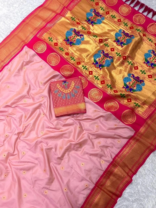 - Traditional Paithani Pallu: Features a stunning contrast Zari Peacock Pallu, showcasing the heritage of Paithani craftsmanship.