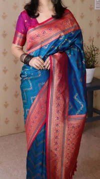 Premium Banarasi Soft Silk Saree with Gold Zari Zigzag Geometric Weaves