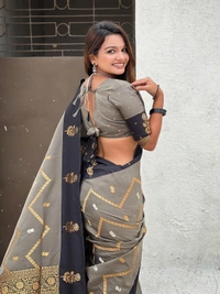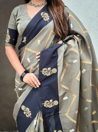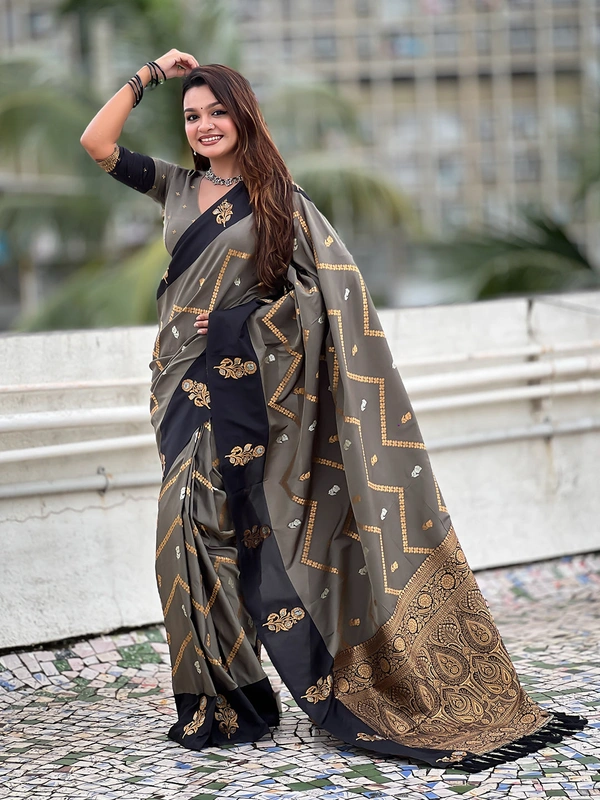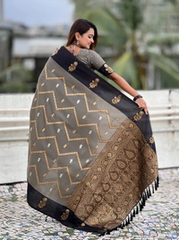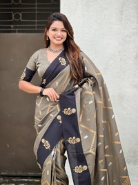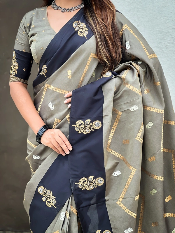 Premium Soft Silk Dusty Saree with Zigzag Motifs & Floral Zari Border