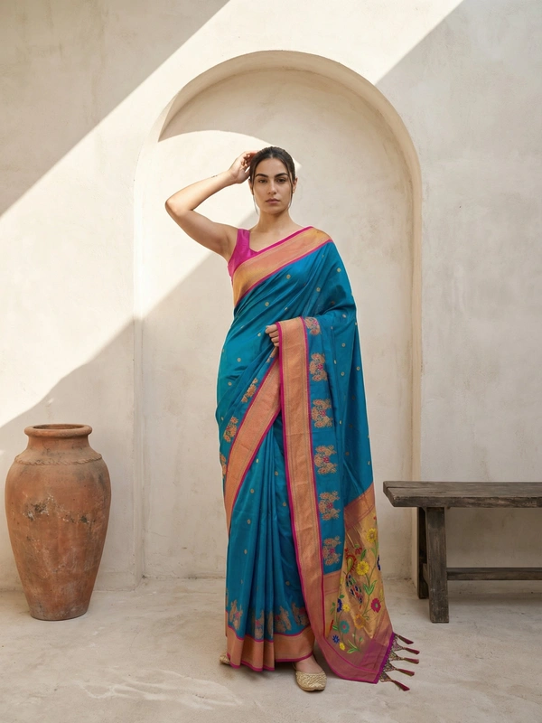 Premium Soft Silk Paithani Saree with Polka Motifs and Peacock Panel Border