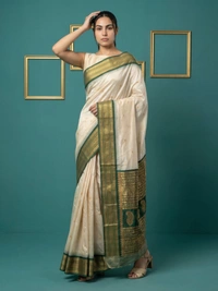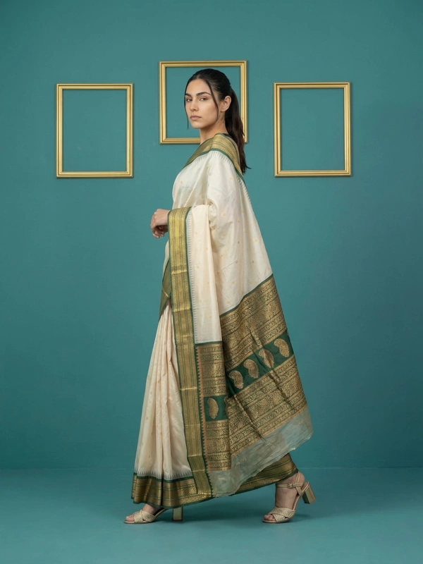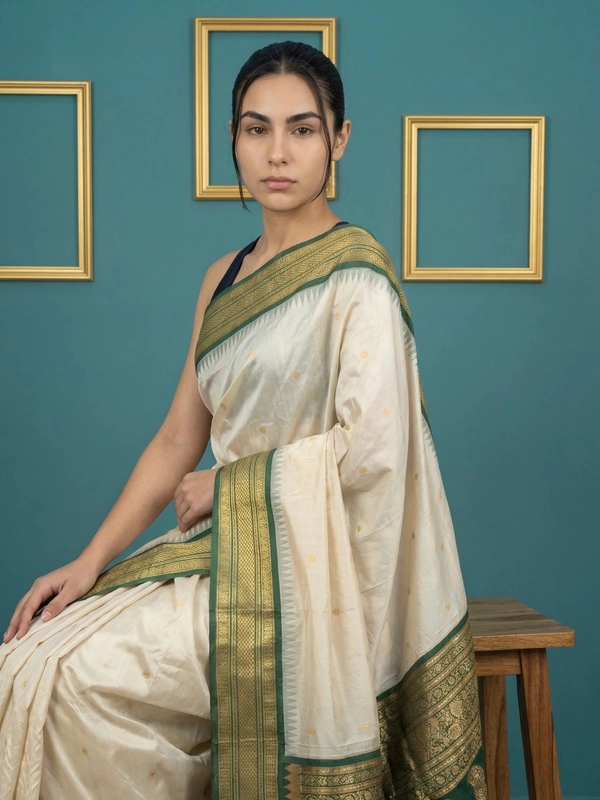 Premium Soft Silk Saree with Gold Zari Motifs and Contrast Rich Woven Pallu