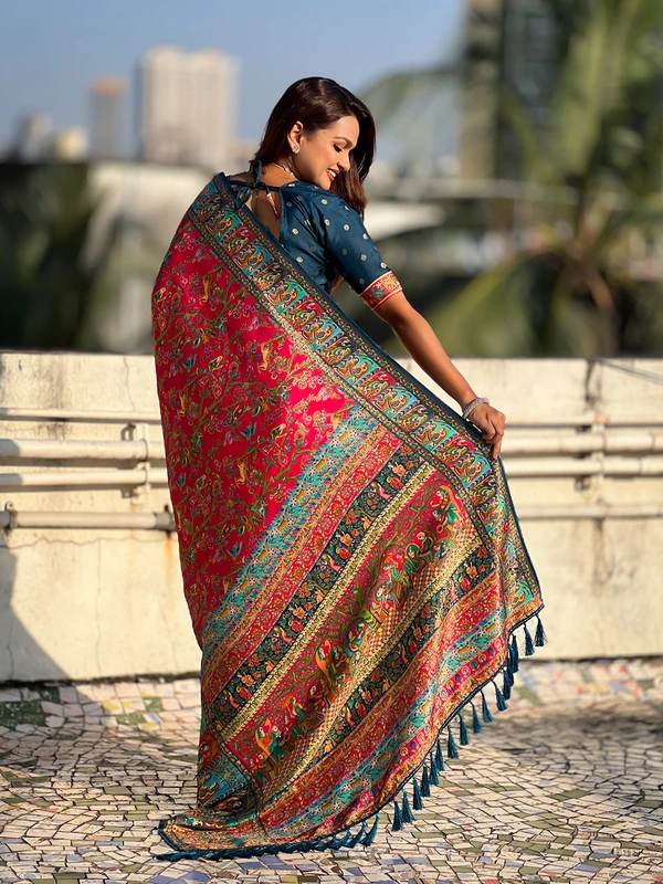 Pure Viscose Silk Saree with Meenakari Zari Jaal & Traditional Pallu