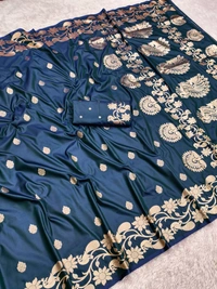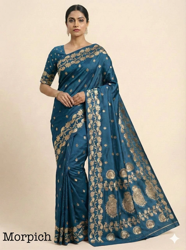 Royal Look Pure Banarasi Saree | Heavy Gold Zari Border & All-Over Motif Weave with Matching Silk
