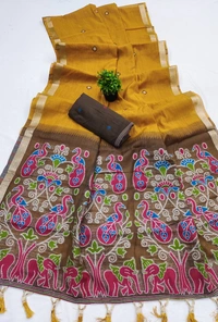 SMC-004 Soft Pure Muga Cotton saree with Meenakari weaving small border & Beautiful Tassels.