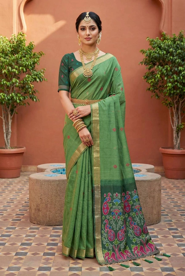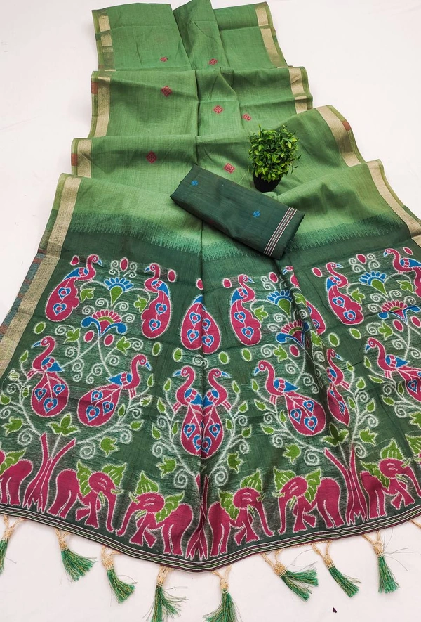 SMC-004: Soft Pure Muga Cotton Saree with Meenakari Weaving & Elegant Tassels
