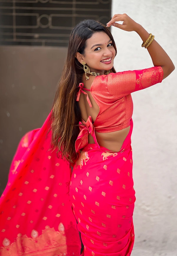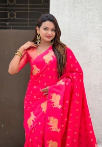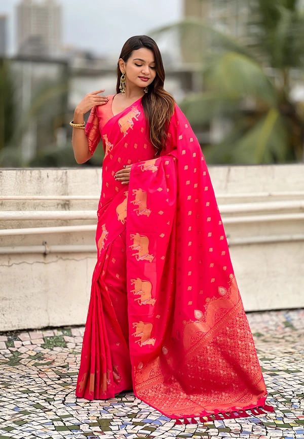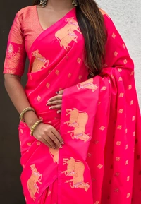 Soft Moonga Silk Saree with Traditional Dual Zari Nandi Border & Butti Blouse