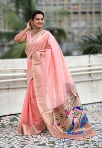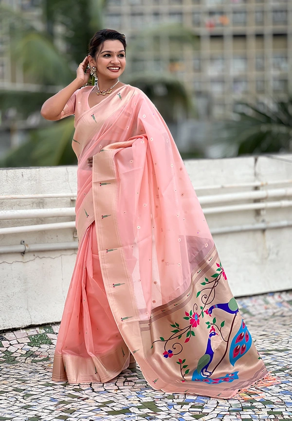 Soft Organza Paithani Saree with Meenakari Zari Butti & Rich Pallu