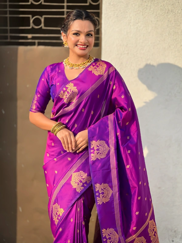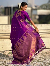 Soft Silk Saree with Elephant Border and Diamond Geometric Zari Woven Pallu