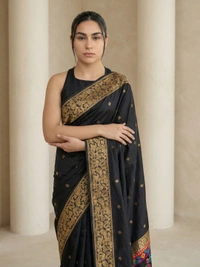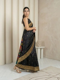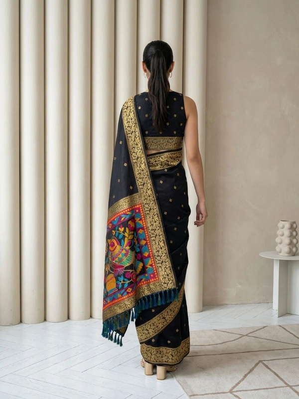 Soft Silk Saree with Gold Zari Floral Motifs & Meenakari Sparrow Pallu