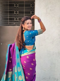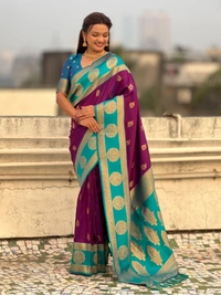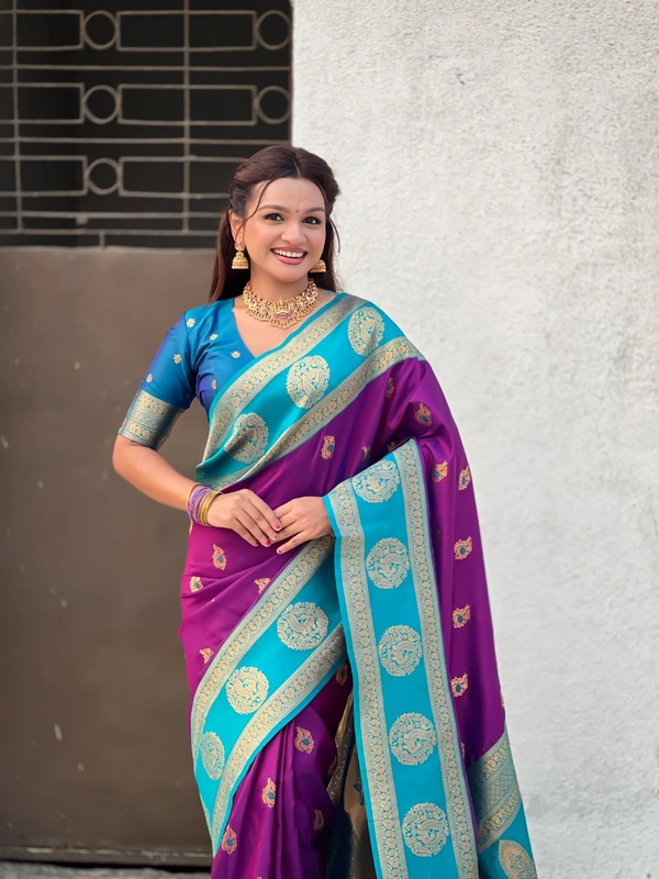Soft Silk Saree with Peacock Zari Motifs and Contrast Peacock Panel Border