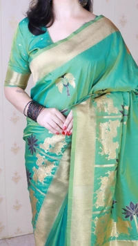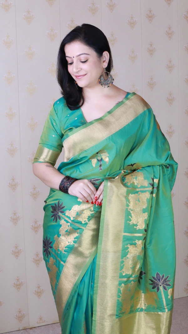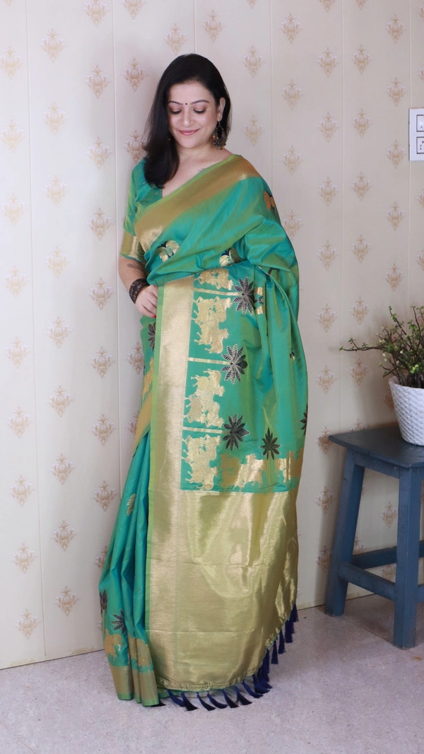 Traditional Pichwai Soft Silk Saree with Kamdhenu Pattern & Zari Border